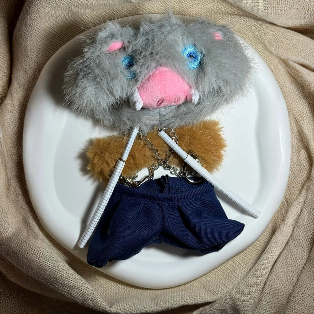 Unleash the wild and fearless spirit of Inosuke Hashibira with this unique outfit designed for your Labubu! This 5-piece set meticulously recreates Inosuke's distinctive appearance, from his iconic headwear to his dual swords. A must-have for fans looking to add a touch of untamed energy to their collection.
